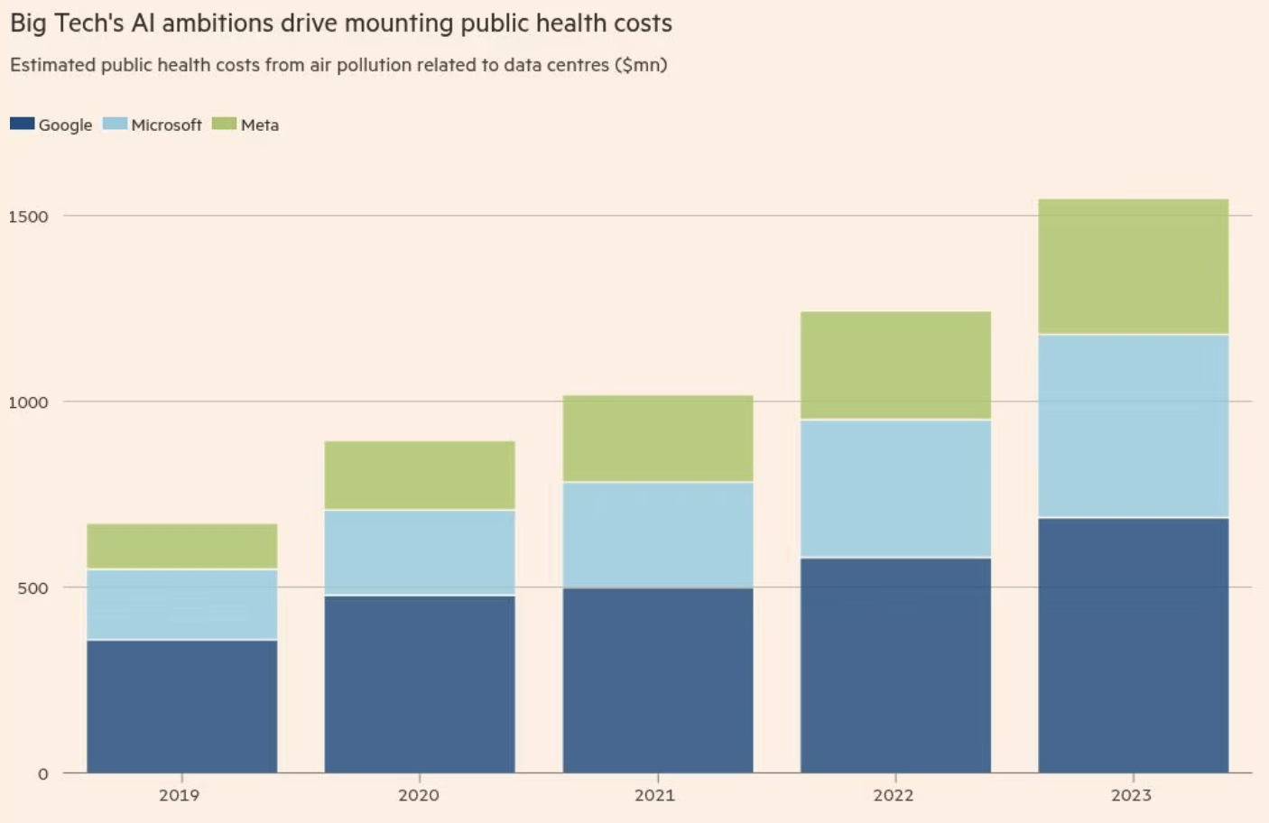 AI数据中心加剧了环境污染 凤凰网科技讯 北京时间2月24日,据《金融时报》报道,美国大型科技公司对于数据中心的使用日益增多,已经在过去五年产生了54亿美元(约合392亿元人民币)的相关公共卫生成本,突显出人工智能(AI)基础设施建设对于公共卫生的影响越来越大。 根据加州大学河滨分校和加州理工学院的研究,数据中心运营需要消耗大量能源,它所制造的空气污染与癌症、哮喘及其他相关疾病的治疗存在关联。研究人员估计,2023年与这种污染相关的疾病治疗费用达到15亿美元,同比增长了20%。他们发现,自2019年以来,与数据中心污染相关的整体公共卫生成本已经累计达到54亿美元。 AI火上浇油 这一污染问题预计会随着科技巨头竞相开发生成式AI而恶化,因为训练和驱动快速发展的大语言模型需要消耗巨大计算资源。 微软、Alphabet、亚马逊和Meta预计,他们今年在AI基础设施上的总支出可能超过3200亿美元,较2023年的1510亿美元增长大约一倍。与此同时,OpenAI和软银在上个月公布了一个名为“星际之门”的大型美国AI基础设施合资项目,总投资高达5000亿美元。 加州大学河滨分校和加州理工学院借助美国环保署(EPA)广泛使用的建模工具得出了上述研究结果。EPA模型将预估的空气质量和人类健康影响转化为货币价值。 美科技巨头数据中心污染所产生的公共卫生成本 估算显示,谷歌在2019至2023年因其数据中心产生的污染给社会带来的卫生成本最高,总计为26亿美元;其次是微软,卫生成本为16亿美元;Meta为12亿美元。每家公司相关的公共卫生成本逐年上升。像亚马逊这样的公司未被纳入分析,因为它们没有发布建模其影响所需的关键数据。 污染如何产生? 数据中心的污染源自其消耗的大量电力,而电力通常来自化石燃料。如果发生停电的情况,数据中心会使用备用发电机,而备用发电机需要使用柴油,这也会导致空气污染。同时,芯片等硬件的废弃物会向环境中释放有害化学物质。 对于大型科技公司对公共卫生的影响,研究人员在计算时将谷歌和微软的北美地区电力消耗数据按照他们在美数据中心的位置进行了拆分分析,并使用了它们公开发布的可持续性报告。对于Meta,他们则使用该公司按位置披露的电力使用数据。 该分析未考虑企业购买市场化工具,这些工具代表对美国新可再生能源的投资。科技公司购买这些工具来抵消其电力消耗造成的污染,包括可再生能源证书。相反,这项研究专注于数据处理所在特定区域产生的污染,采用了一种被称为“基于位置”的核算方法。 “与碳排放不同,数据中心在某一地区造成的健康影响无法通过其他地方的清洁空气来抵消。”加州大学河滨分校电气与计算机工程系副教授任绍磊(Shaolei Ren)表示。 研究显示,由于数据中心位于西弗吉尼亚州或俄亥俄州等地,它们所产生的健康影响对低收入家庭更大且不成比例。 任绍磊表示,科技公司有机会通过将数据中心战略性地安置在人口稀少的地区,从而减轻其影响,从而扭转他们所构成的“日益严重的公共卫生威胁”这一趋势。 根据美国能源部所支持的伯克利实验室的另一份报告,美国数据中心的能源使用在2023年占美国总电力消耗的约4%,这一比例预计到2028年将上升到7%至12%,主要受到AI算力需求增长推动。 “人们担心污染问题,因为AI是能源密集型技术,而且人们正越来越多地使用它,”伦敦布鲁内尔大学环境科学讲师安东尼斯・米里达基斯(Antonis Myridakis)表示,“这是影响空气质量和公共健康的一个重要因素,我们不能忽视它。” 回应 谷歌、Meta和微软表示,它们使用备用发电机的情况低于研究中估算的水平。该研究基于公开披露使用量的中位数估算。三家公司没有提供每个地点使用备用发电机的详细数据。 谷歌补充说,卫生成本估算被夸大了,并且没有“考虑到我们在运营所在地市场购买的清洁能源”,因此“在虚假前提下得出了不准确的排放估算,破坏了清洁能源资源发展取得的进展,炮制了关于健康危害的虚假叙事”。该公司补充说,其购买的清洁能源使其平均大约64%的能源消耗来自零碳能源。 微软表示,公司专注于“为我们运营所在社区提供显著的地方、经济、社会和环境效益”。 Meta称,公司遵守空气质量要求,并致力于“保持我们全球运营的净零温室气体排放,建设创新和可持续的基础设施,透明地报告我们可持续发展目标的进展,并支持我们运营的社区”。(作者/箫雨) (责任编辑:郭健东 )