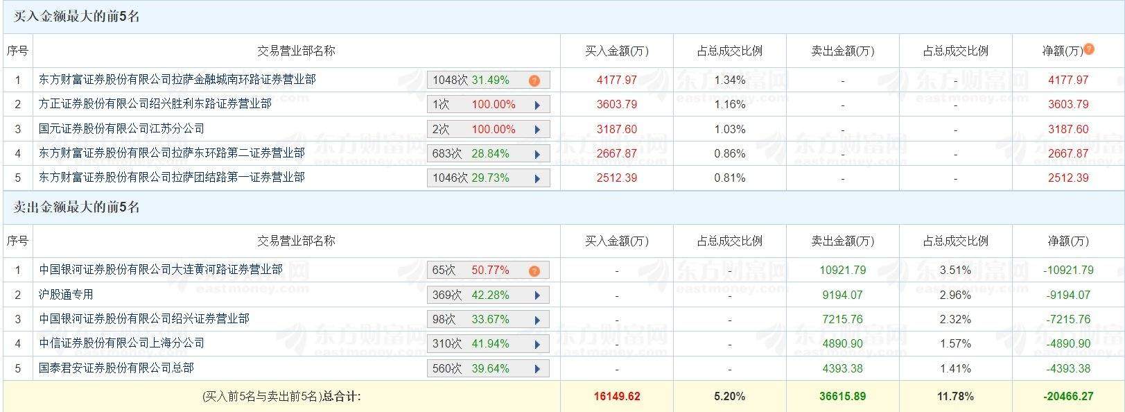 格隆汇2月24日|浙数文化(600633)(600633.SH)今日跌停,成交额31.08亿元,换手率14.07%。龙虎榜数据显示,沪股通位列卖二席位,卖出9194.07万元;游资“陈小群”位列卖一席位,卖出1.09亿元;“流沙河”位列卖三席位,卖出7215.76万元;“量化基金”位列卖五席位,卖出4393.38万元。上榜席位全天买入1.61亿元,卖出3.66亿元,合计净卖出2.05亿元。(格隆汇) (责任编辑:宋政 HN002)