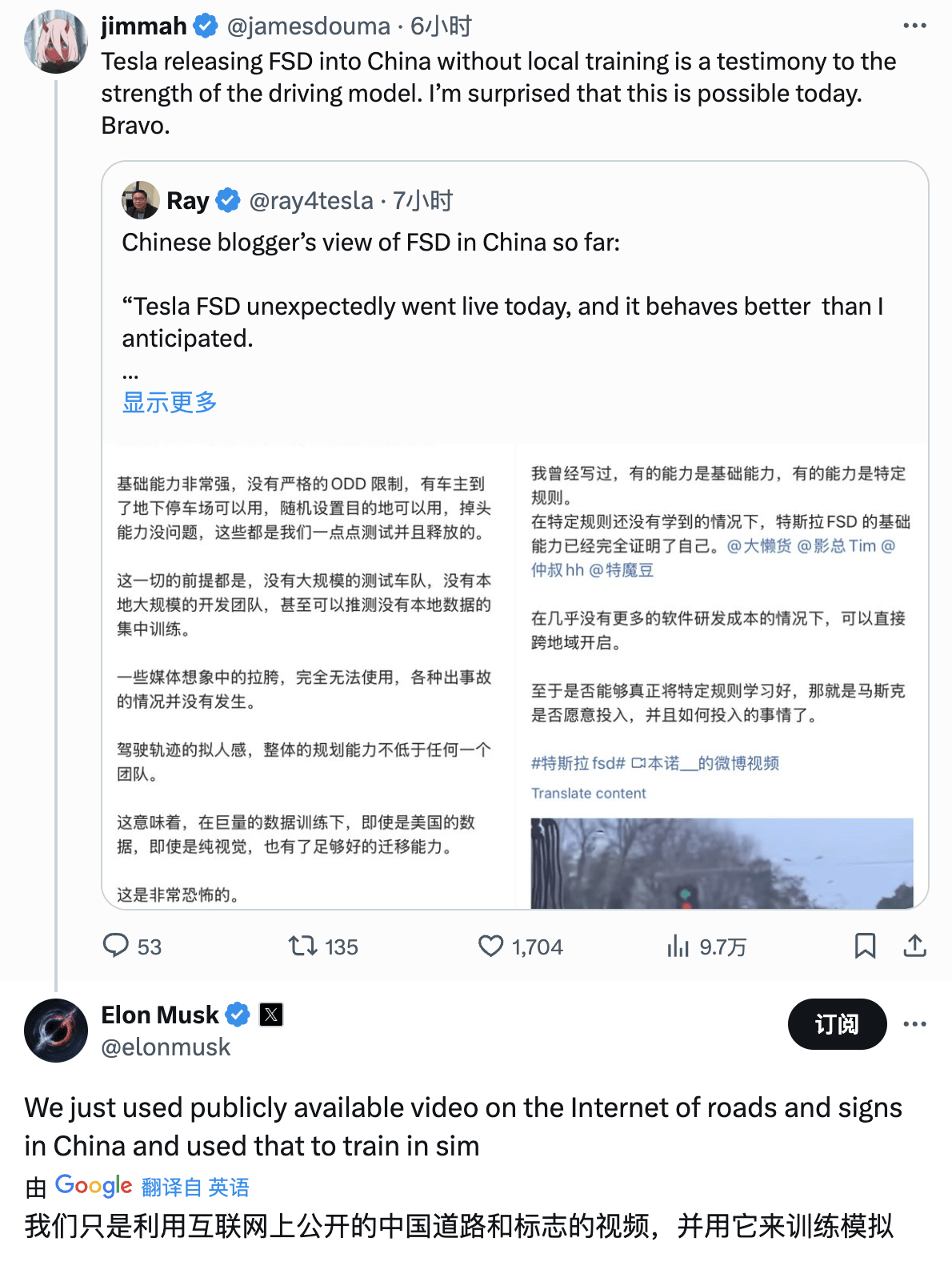 凤凰网科技讯 2月25日消息,特斯拉“FSD智能辅助驾驶功能”正式在中国市场推送,这一举动引发了中国本土车企高管的广泛关注和积极回应。 理想汽车CEO李想也发文称,“十年前,我从马斯克手中接过钥匙,成为中国首批特斯拉车主。特斯拉一直是我们在智能电动车领域学习的好榜样。” 小鹏汽车董事长何小鹏表示,“听说今天特斯拉FSD开始陆续在中国推送,热烈欢迎,整个智能驾驶行业会有更多的有趣交流和互相促进。”他认为,小鹏和特斯拉是全球最早将大模型端到端技术应用在智能驾驶并量产落地的AI科技公司,也是唯二有能力不依赖高清地图和激光雷达,用一套软件努力实现智能驾驶“全球都好用”的AI科技探索者。但他同时指出,高阶智驾如果想要在全球市场推广落地,就必须做到“基础硬件标配、软件免费、高频OTA成长”。 阿维塔科技总裁陈卓在社交平台发文表示,“看到特斯拉在中国更新软件部署FSD的信息,非常高兴。特斯拉是全球智能驾驶的第一梯队,阿维塔也一直在超级智驾的路上,一往无前。强强碰撞,才能不断精进,希望有机会能够相互切磋体验,取长补短,共同推动智能驾驶的发展,推动全民智驾。” 特斯拉此次推送的FSD软件,上线了城市道路Autopilot自动辅助驾驶功能,这一功能将为用户带来更加便捷和安全的驾驶体验。据特斯拉官网介绍,这套此前被称为“完全自动驾驶能力”,现在被更名为“FSD智能辅助驾驶功能”。 北京时间2月26日,特斯拉CEO马斯克在社交媒体上回应相关评测时称,特斯拉使用了互联网上公开可用的中国道路和交通标志视频,在模拟环境中对FSD进行了训练。 (责任编辑:刘畅 )