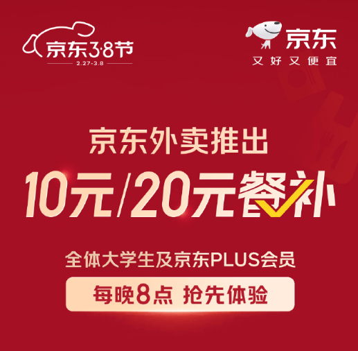 凤凰网科技讯(作者/冯皓钦)2月27日,京东官方发布微博宣布,京东外卖上线“10元/20元餐补随机领”活动,全体大学生及京东PLUS会员均可领取。官方称,即日起每晚8点,打开京东APP,点击“品质外卖”频道入口,或在京东App搜索“月黑风高”或“京东校园”即可领取,大学生用户可在京东App搜索“学生认证”,完成认证后参与餐补进行领取。 据悉,餐补优惠的使用范围包含京东外卖平台上线的所有餐饮外卖门店。 据此前消息,2月11日,京东宣布京东外卖上线,并启动了“品质堂食餐饮商家”招募模式,宣称2025年5月1日前入驻的商家,全年可免佣金。此外,京东还为所有新签约的全职或兼职骑手缴纳五险一金,费用全部由京东承担。 (责任编辑:张晓波 )
