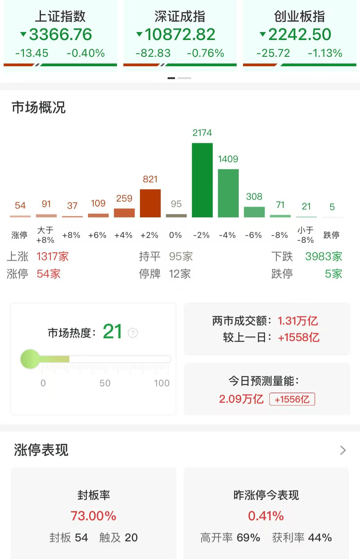 格隆汇2月27日|A股主要指数早盘集体调整,截至午盘,沪指跌0.41%报3366.45点,深成指跌0.76%,创业板指跌1.14%。全市场半日成交额13373亿元,较上日放量1611亿元,近4000只个股飘绿。 盘面上,大消费板块逆市上涨,免税店、食品、饮料、白酒等方向涨幅靠前,海南发展、海南椰岛、佳禾食品、好想你(002582)等涨停;固态电池板块震荡走高,华丰股份、圣阳股份(002580)5连板。铜缆高速连接、液冷服务器概念跌幅居前,博创科技、日科化学(300214)跌超10%。(格隆汇) (责任编辑:宋政 HN002)