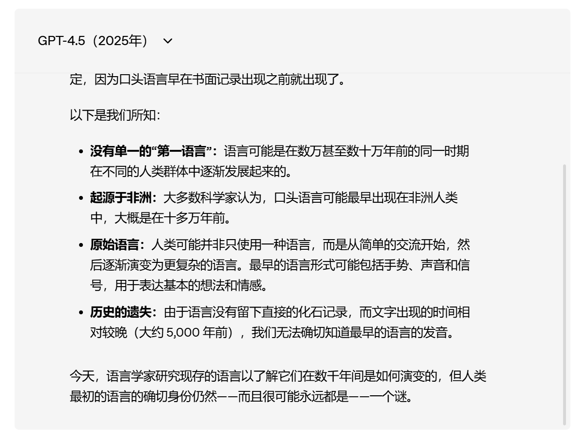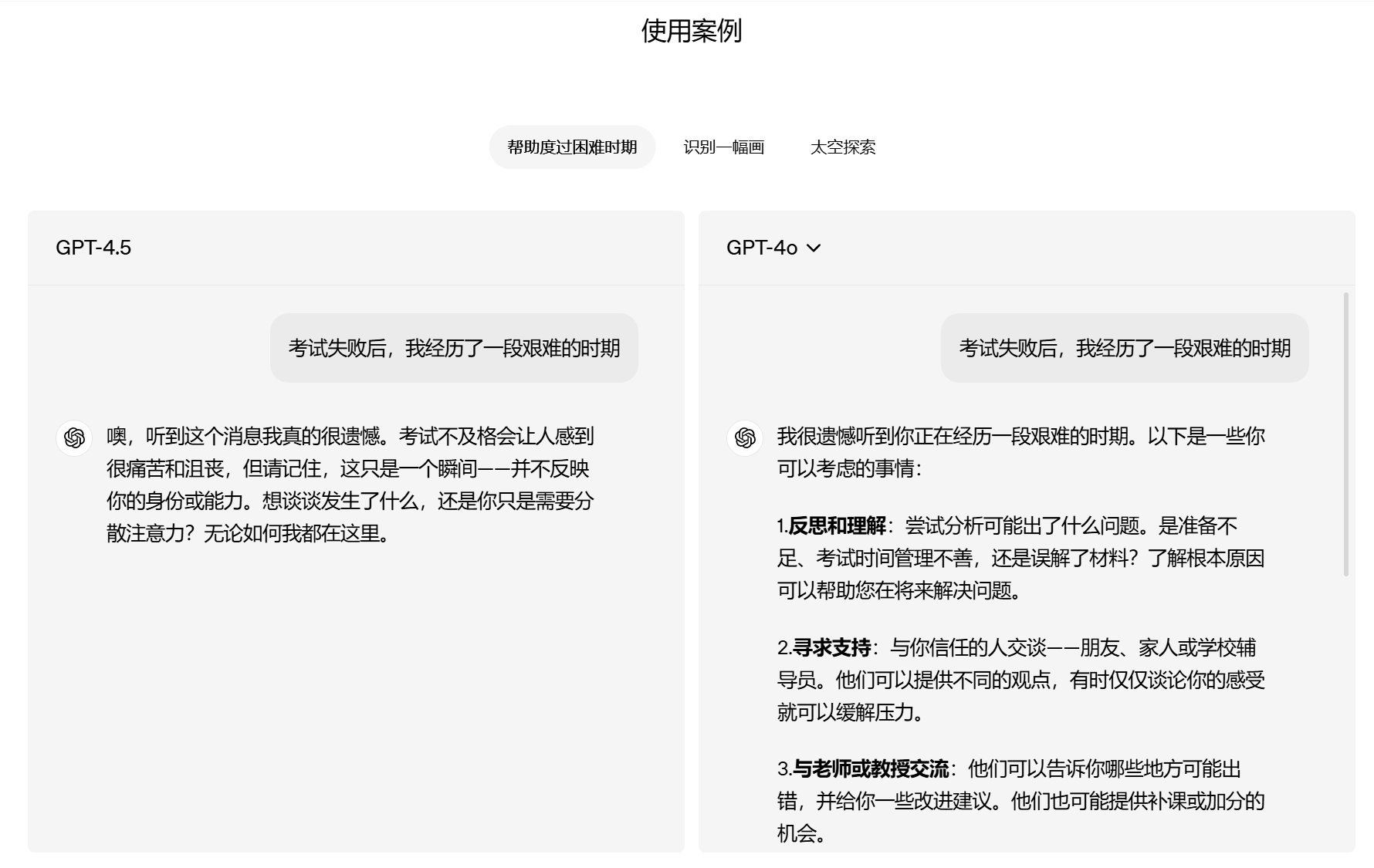 凤凰网科技讯 (作者/陈俊熹)2月28日,OpenAI发布了旗下最新一代大语言模型GhatGPT4.5。相较于GPT-4,GPT-4.5在多个方面进行了优化。该模型通过进一步扩展无监督学习技术,增强了模式识别和创造性洞察的能力。GPT-4.5在用户交互中的表现更加自然,知识覆盖面更广,能更好地理解并响应用户的意图。 回答问题更加严谨 GPT-4.5的核心进展在于其无监督学习的提升。通过增加计算能力和数据规模,GPT-4.5在处理复杂任务时显示出更高的准确性,尤其是在减少“幻觉”现象(即错误生成信息)方面表现突出。这使得模型在处理事实性问题时更加可靠,适用于更广泛的应用场景。 幻觉减少,准确率提高 在早期测试中,GPT-4.5展现出较高的情感智能(EQ),能够根据对话的情境调整回应,尤其在处理与用户情感相关的交流时,表现出更高的同理心。此外,GPT-4.5在创作领域的表现也有所提高,能够生成更加连贯、符合用户需求的内容。 更高的“情商”、更强的审美直觉和创造力 尽管其主要依赖无监督学习,GPT-4.5在推理方面也有很强表现,在多个基准测试中,GPT-4.5比GPT-4在知识准确性和信息生成的连贯性上都有明显提升。 与4o和o3-mini对比 此外,OpenAI也向开发者提供了GPT-4.5的API,支持多步骤任务和复杂工作流的自动化应用。该模型的多语言处理能力同样有所增强,使其能够在更多语言环境下有效工作。 OpenAI表示,GPT-4.5仍处于研究预览阶段,未来将继续优化,以便更好地服务于各行各业的需求。同时,OpenAI在开发过程中加强了安全性测试,确保模型在处理敏感内容时的可靠性和安全性。 (责任编辑:董萍萍 )